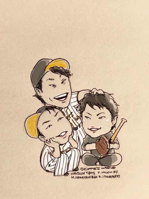 Kuppie S World Sports 中谷将大 選手 北條史也 選手 糸原健斗 選手 阪神タイガース まーくん まーちゃん ほーちゃん じょーくん 糸ちゃん パイセン キー太 お絵描き 似顔絵 着色してみたら ばり可愛いのよ T Co Soctg8pfus Twitter